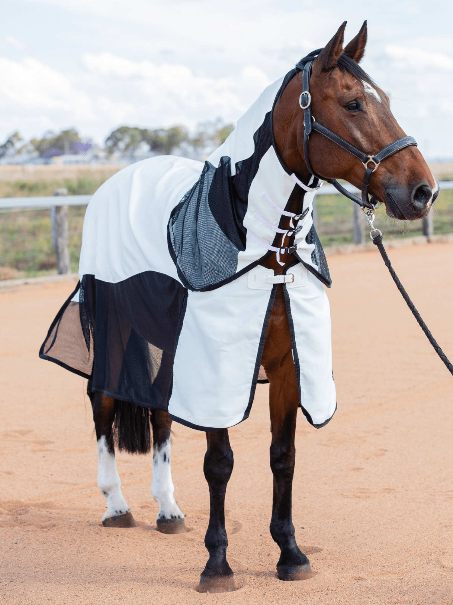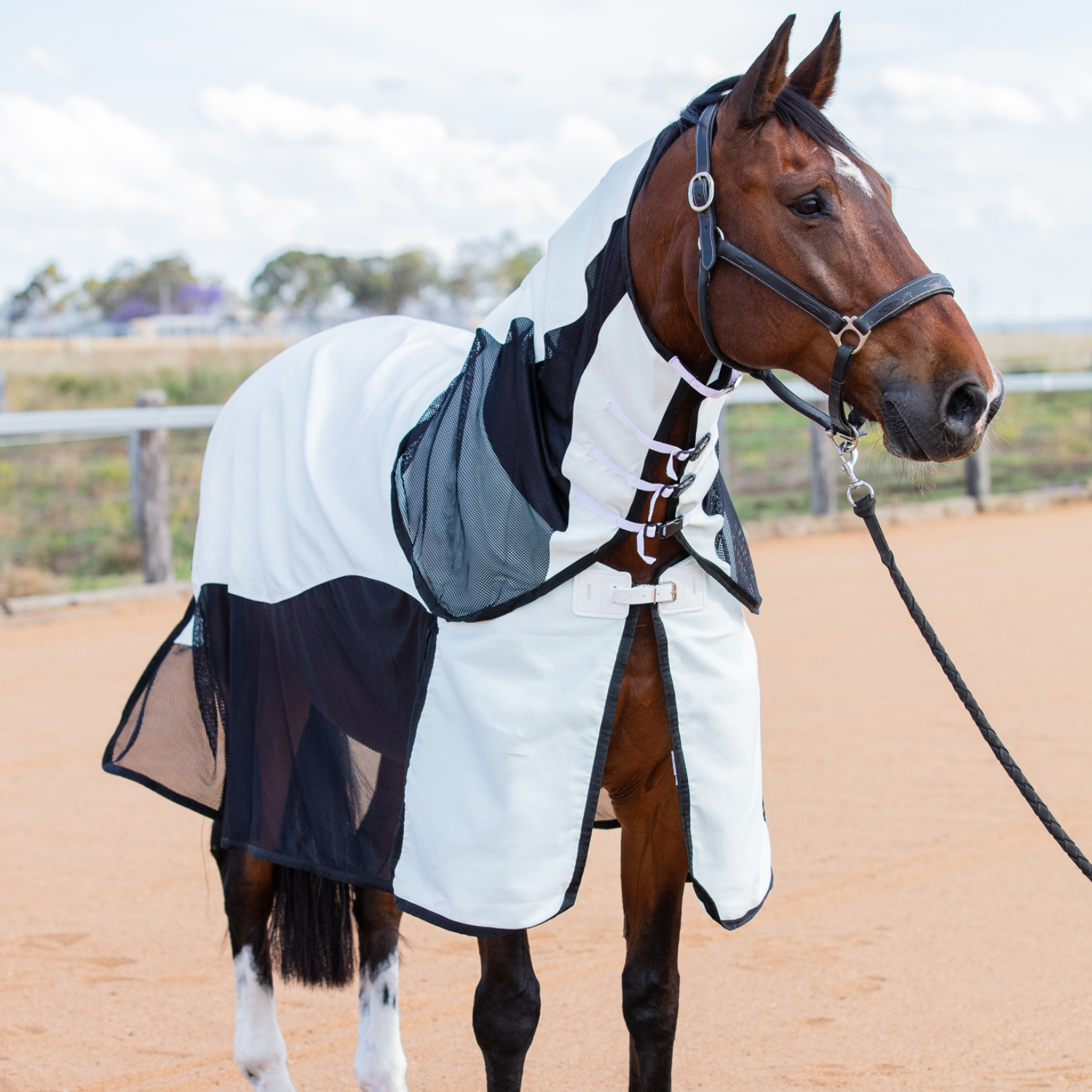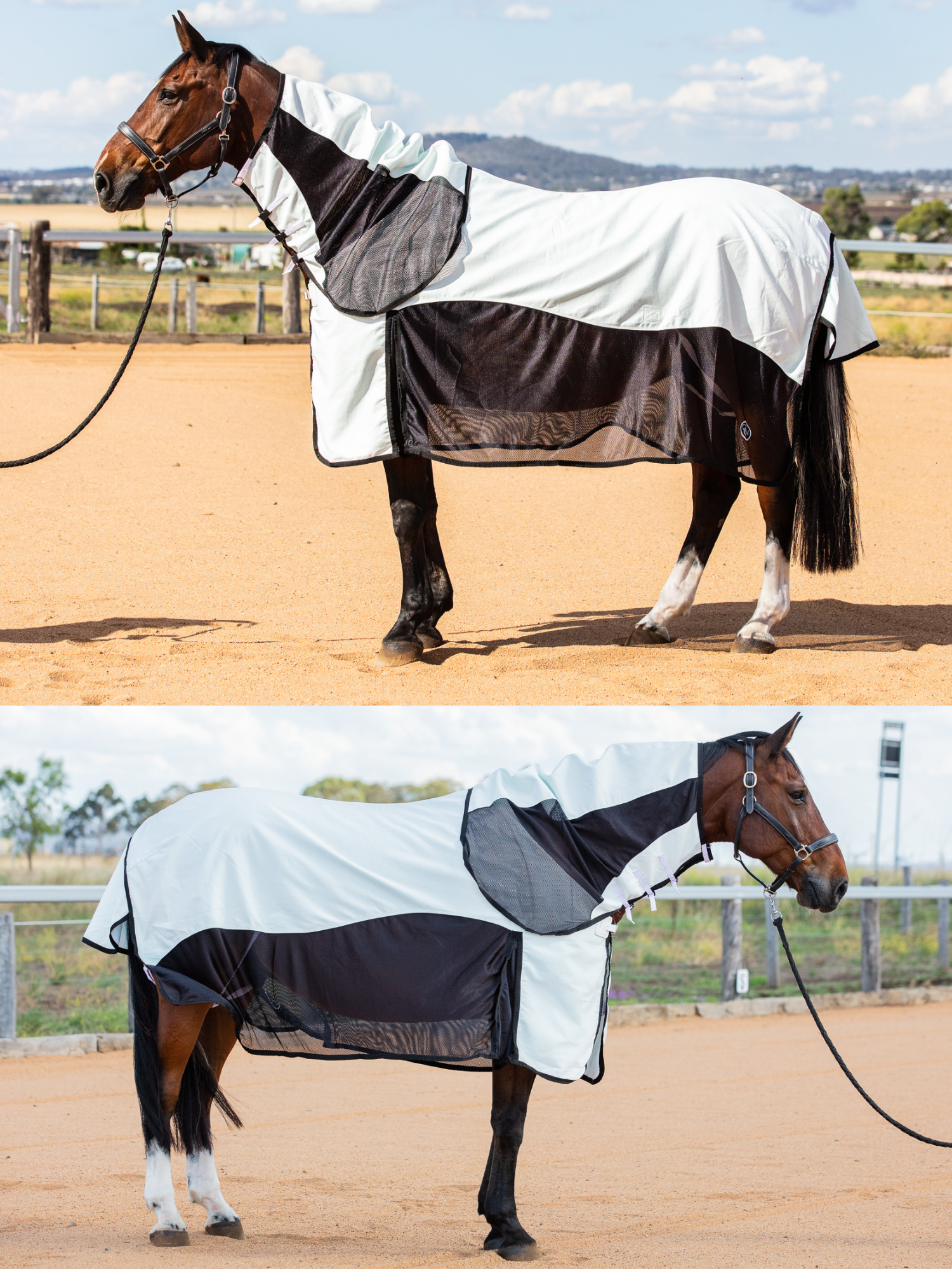 I absolutely love this rug cool on hot days but waterproof on rainy days as we get all season in one day on the south coast nsw fits my yearling perfedt