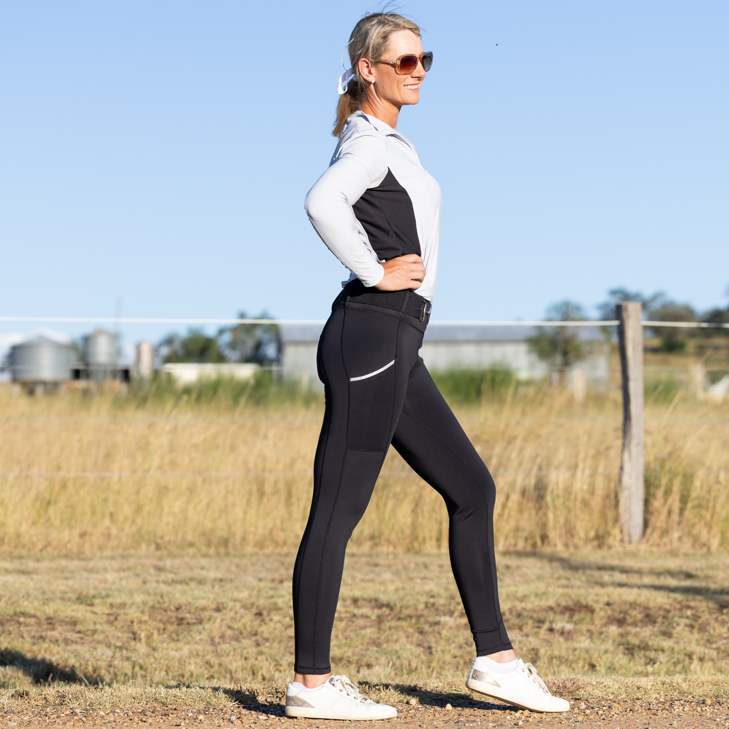 Featuring TWO deep & practical pockets, just right for your phone, gloves, horse treats and more. Wide, stretchy waistband, with BELT LOOPS!