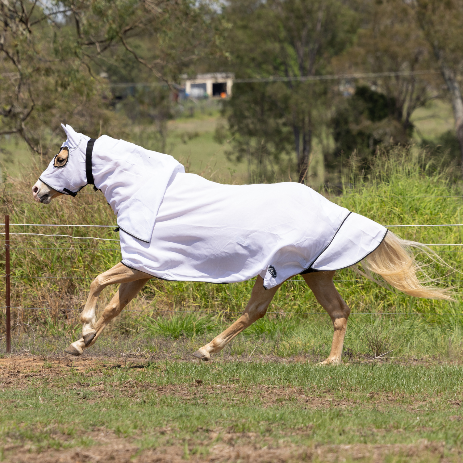 The 150gsm fabric assists in preventing sun bleaching and also helps to keep those pesky insects away, without overheating your horse.