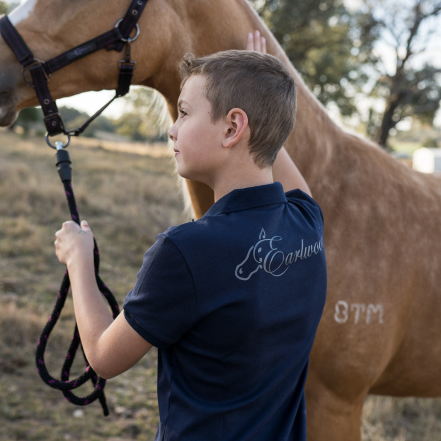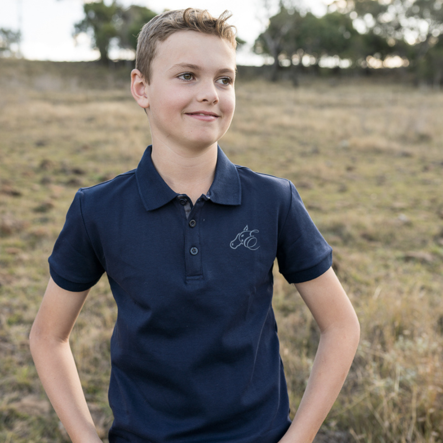 Everyone asks for more riding wear for boys, so we've developed a simple, handsome polo shirt for boys to feel comfortable in, without any pink in sight!