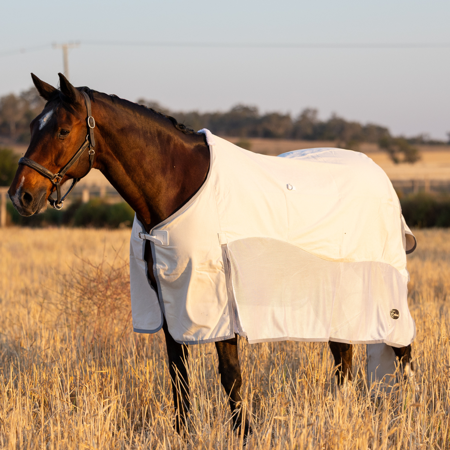 With colour inspired by the cheeky Seagull, this mesh rug has a long drop for extra sun and insect protection, with satin lined shoulders.