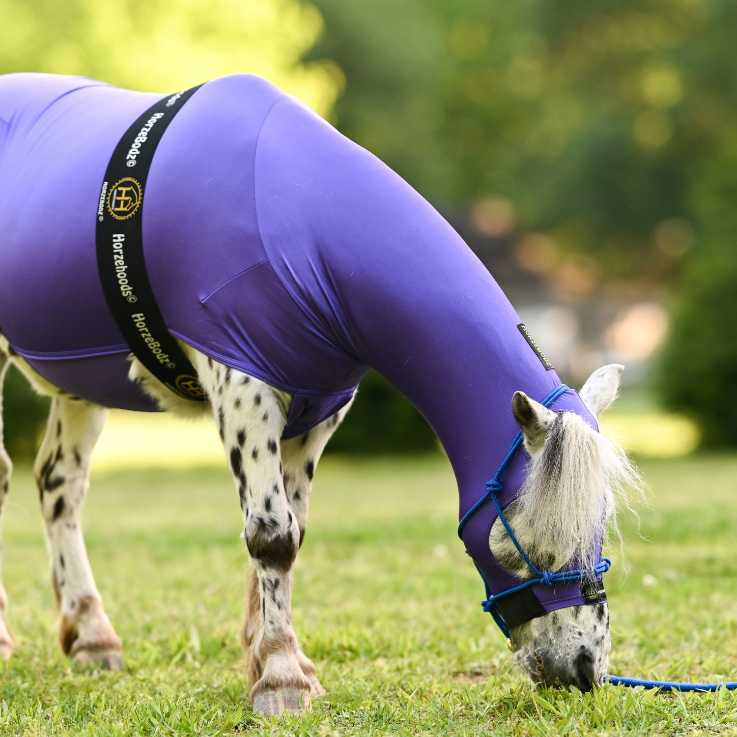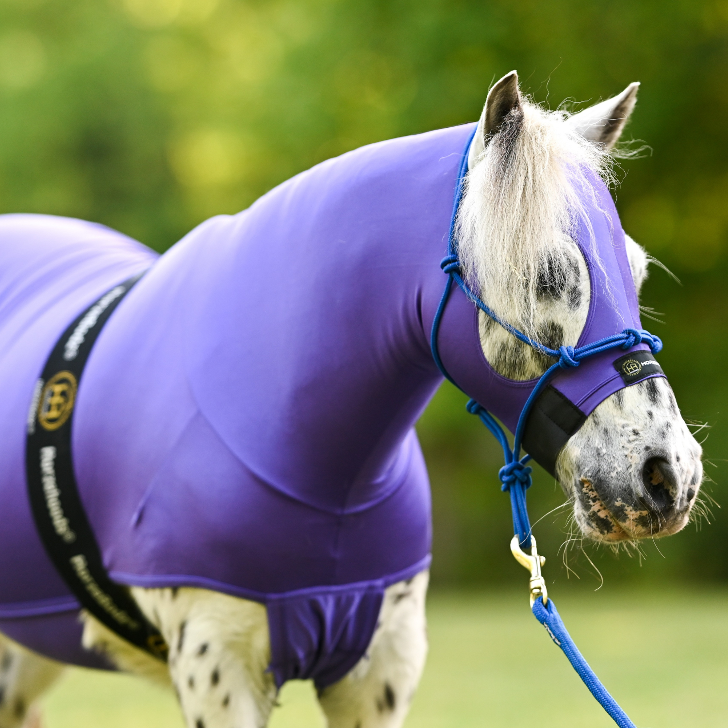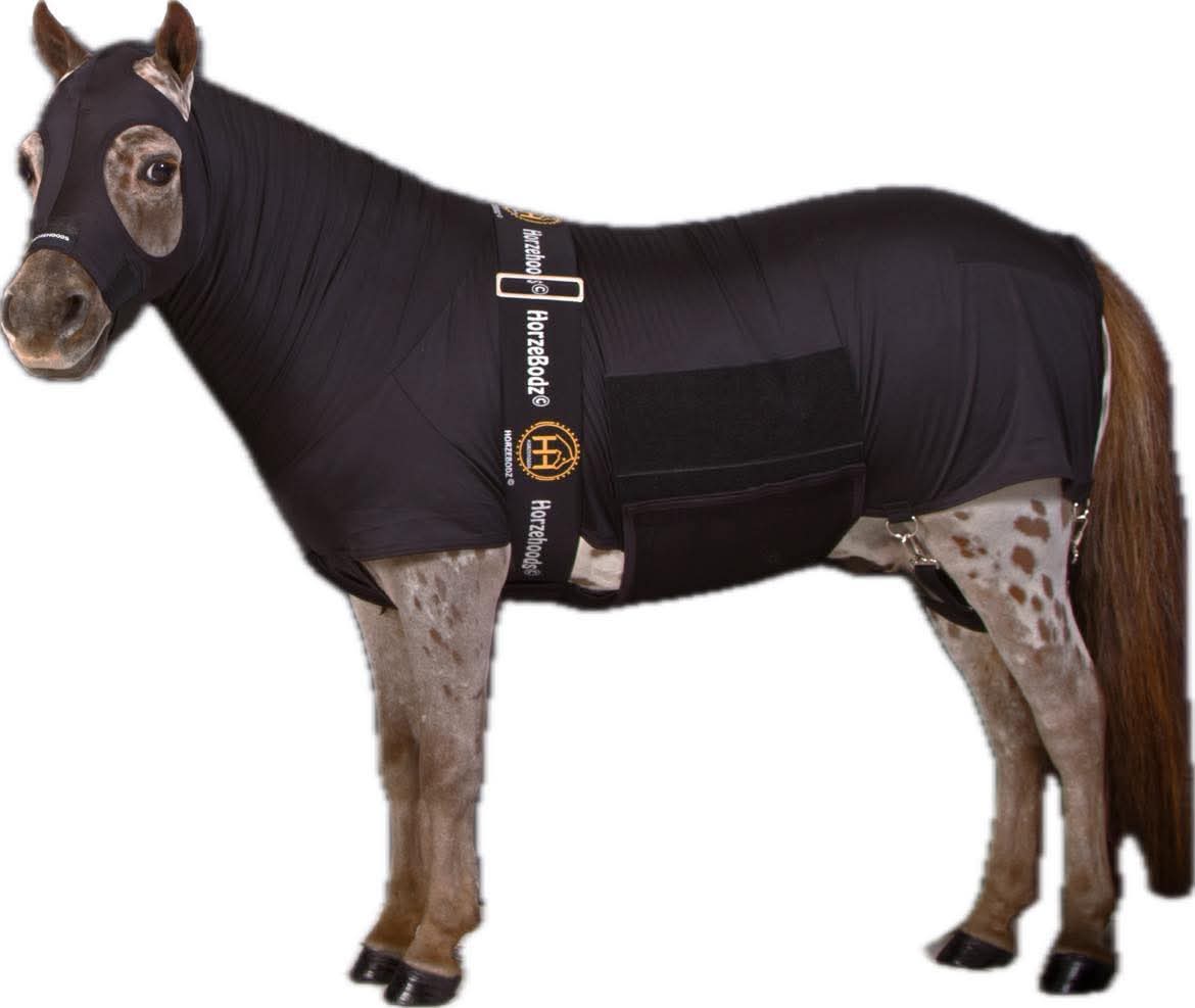This mini version of our full body Horzebodz is made to be super lightweight. After years of testing we have found the most effective fabrics on manes and coats are those that consist of light, fine weight blends. Heavier grams of fabric cost no extra to make, however are not as effective for keeping the mane and coat the best it possibly can be. By using a full body Horzebodz with attached hood, in this super light fabric blend, you will notice an instant transformation in the horse's coat.