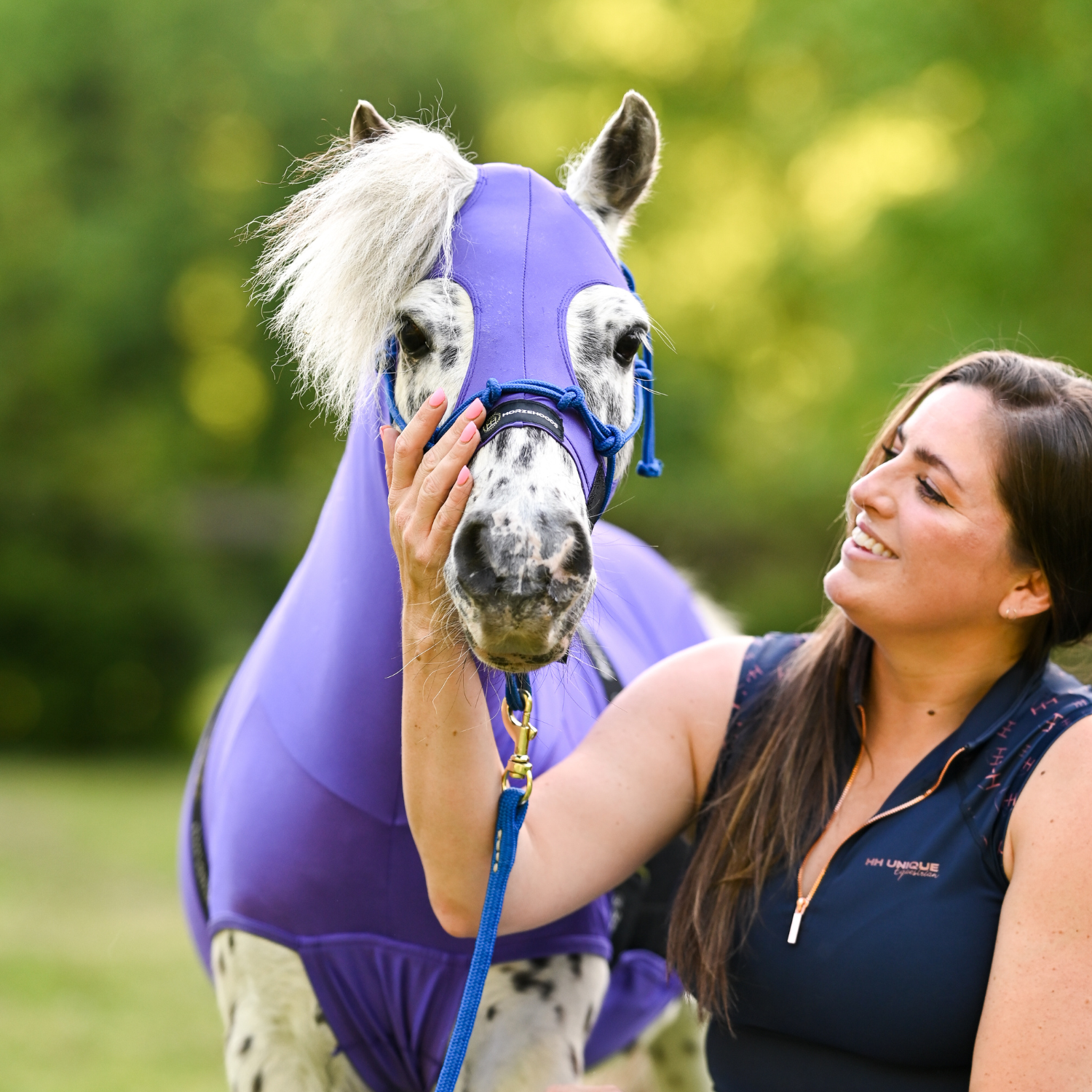 This mini version of our full body Horzebodz is made to be super lightweight. After years of testing we have found the most effective fabrics on manes and coats are those that consist of light, fine weight blends. Heavier grams of fabric cost no extra to make, however are not as effective for keeping the mane and coat the best it possibly can be. By using a full body Horzebodz with attached hood, in this super light fabric blend, you will notice an instant transformation in the horse's coat.